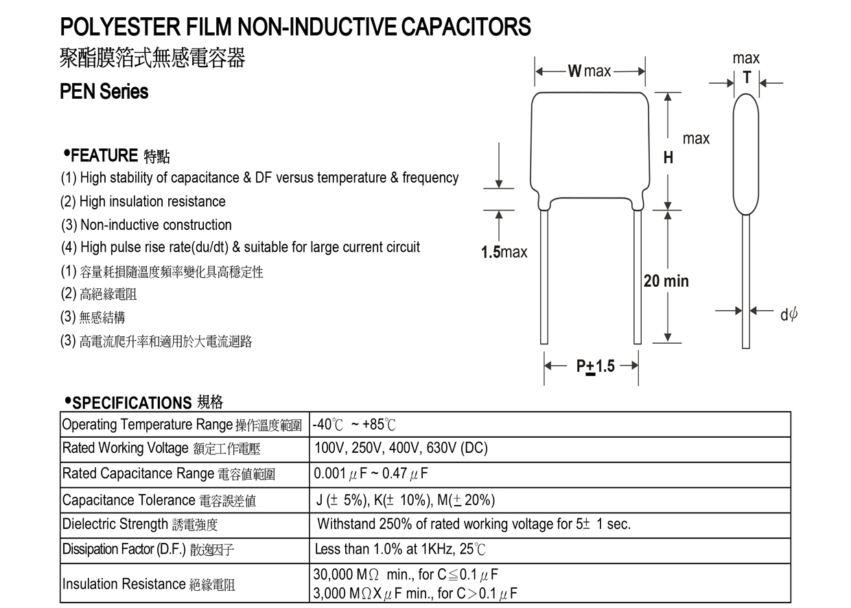 聚酯膜箔式無(wú)感電容器PEN系列