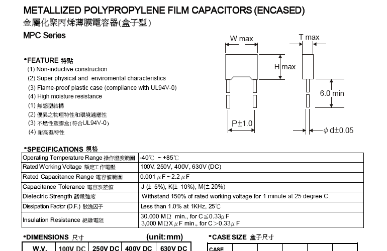 «金屬化聚丙烯膜箔式電容器(高壓用途) MPS系列